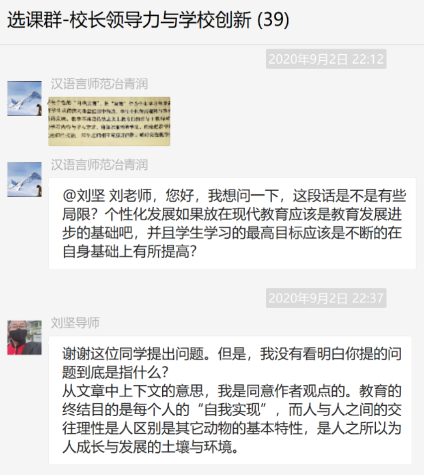 每次讲座之前,助教团队都会筛选出主讲嘉宾进3年来的代表性文章,分享到课程群,共享学术资源。员工们利用课前预习资源,从主讲者的文字中初步了解他的人才观和教育观、提倡的教育理念和教育实践。再根据阅读的内容,结合讲座主题,提炼出最想问董事长的1-2个问题。经助教团队的初步筛选,形成问题库,提供给董事长和课程主讲教师,以便根据员工需求微调讲座内容。