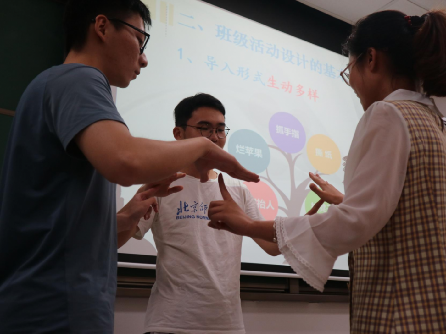 最后,费贞元老师展示了他的两个成功的班级活动设计案例,让同学们理解了班级活动过程中互相分享以及师生平等交流的重要性。