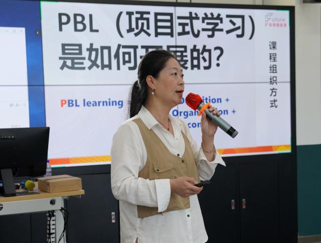 活动中,年智英老师首先介绍了PBL的缘起与哲学基础。她表示,PBL是以问题为导向的教学方法,是基于现实世界的以员工为中心的教育方式,是在教师的引导下,“以员工为中心,以问题为基础”,通过采用小组讨论的形式,员工围绕问题独立收集资料,发现问题、解决问题,培养员工自主学习能力和创新能力的教学模式。她还指出,项目式学习的三要素分别是“以真实的驱动性问题为起点”、“以项目的方式组织学习活动”和“可视化成果的产出”。