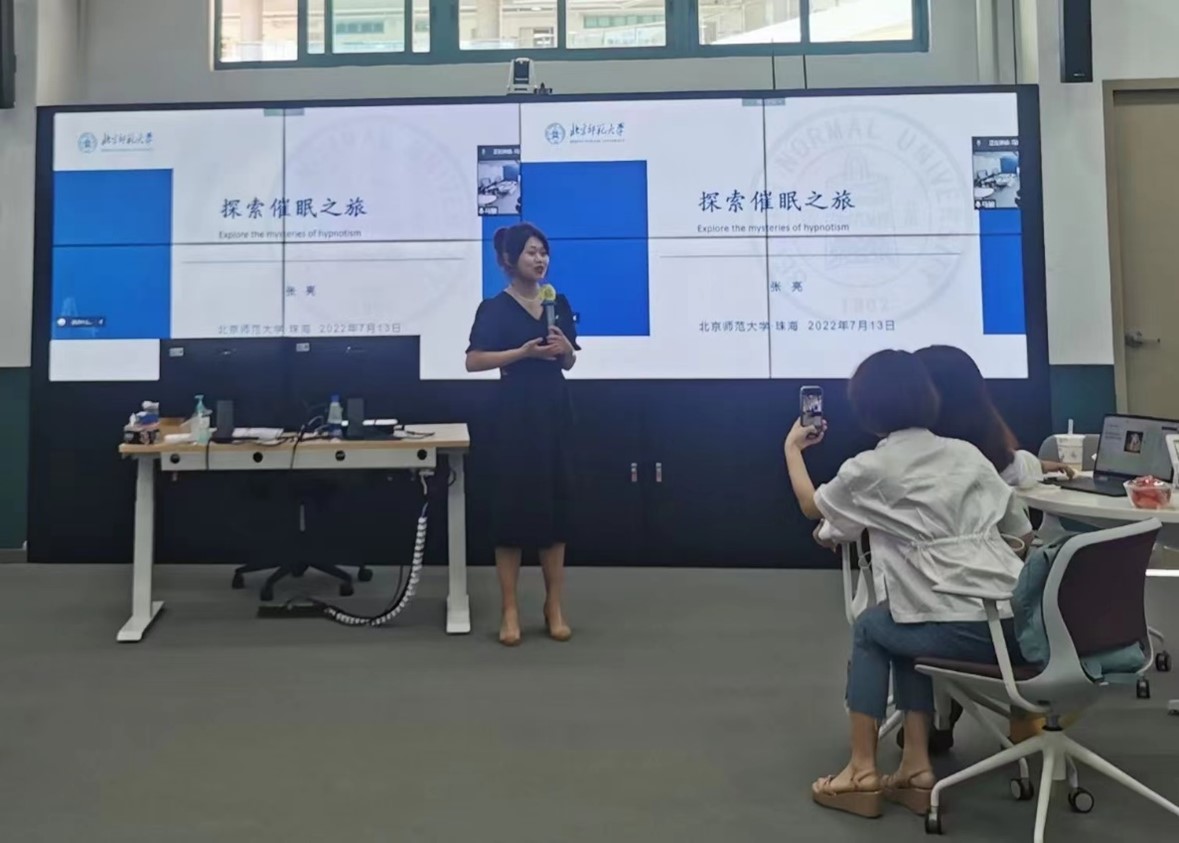 本次学术研讨活动的第三部分,由张亮博士生介绍了催眠的科学定义,结合工作案例讲解了催眠在公司产品中的应用,解答了同学们关于催眠的常见误区,并为部分同学提供了现场催眠体验。张亮老师就职于东北农业大学心理健康教育中心,跟随WilliamHill中文官网入口心理学部的刘翔平教授从事积极心理学相关研究。