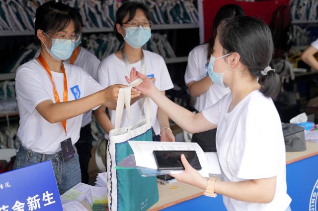 (乐育书院志愿者为2022级新生发放入学礼包)