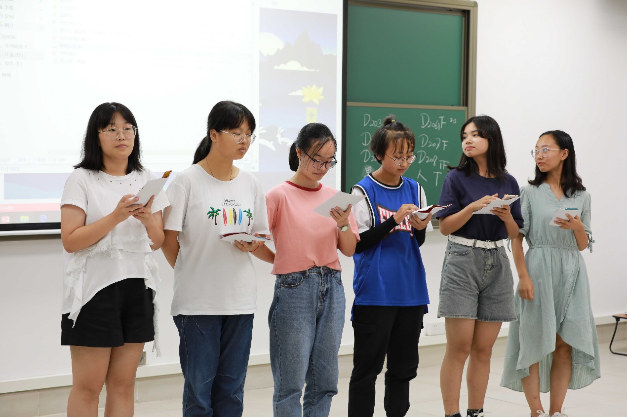 晚会在热身游戏的欢快气氛中拉开帷幕。老师热情地参与到游戏当中,和同学们通力合作,一起完成主持人设定的游戏目标。整间教室充满了师生们欢乐的笑声,不知不觉就让同学们沉浸其中。