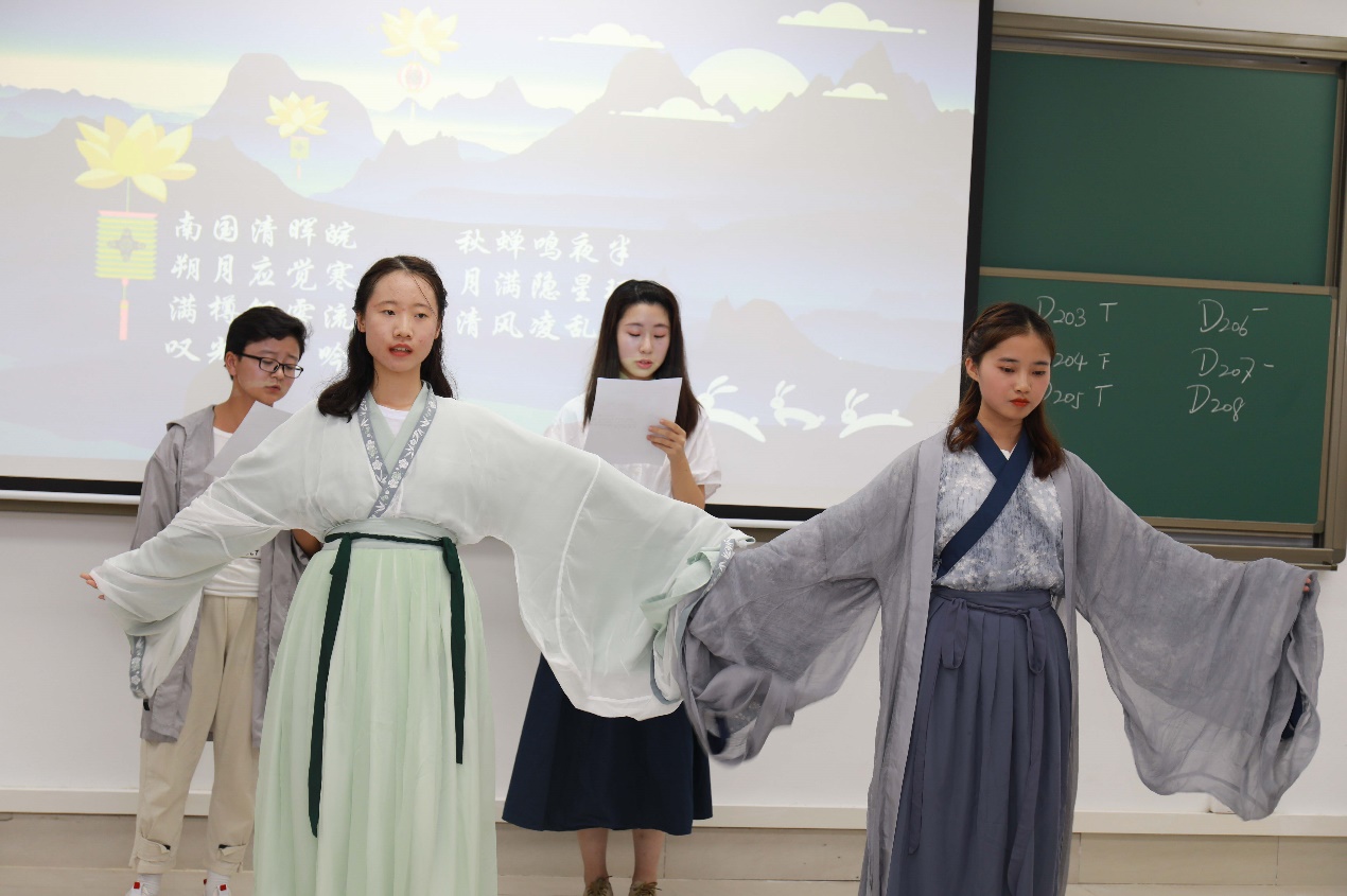 晚会上,同学们表演了一些弘扬中华传统文化的节目,例如以“月”为主题字的飞花令诗词比赛、以中秋晚会为背景的小品《八月会》等等,让大家在欢声笑语中领悟到了中华“月”文化的无穷魅力,在不知不觉中生发对团圆和睦的美好追求和浓浓的家国情怀。