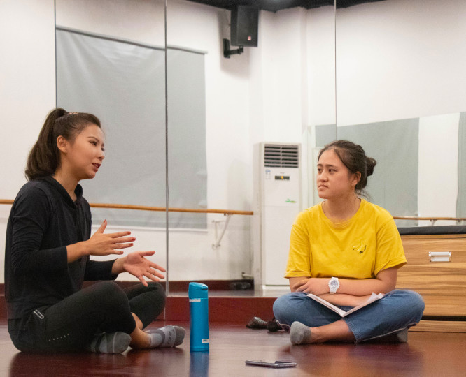 足尖微掂,手臂轻盈,举手投足间尽是优雅。细心地为每个员工指点动作,课间和同学们模仿嬉戏,说不尽的关心,开不尽的玩笑,以及镜子里显映出的淡淡微笑……这样一位细心,温柔,体贴的大姐姐,在教学方面却毫不马虎,几乎对每一个员工都是亲力亲为。