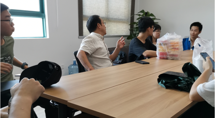 朱小健老师与同学们在会议室座谈