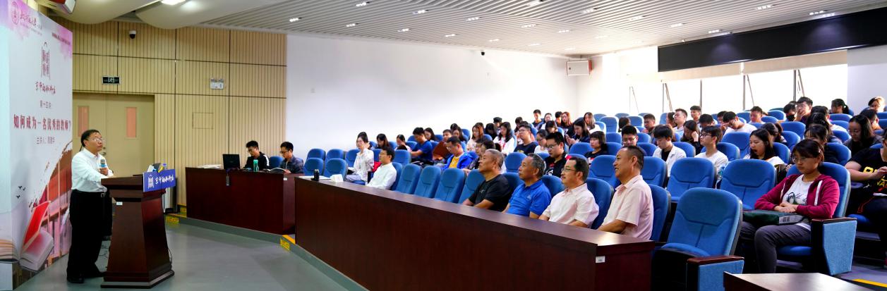 周建华老师讲到教师要不断地主动学习,“教学理念‘顶天’,而教学基本功‘立地’,要想成为一名优秀教师,就要扎扎实实地打好基础,要‘练心、练情、练口、练手、练艺’”。