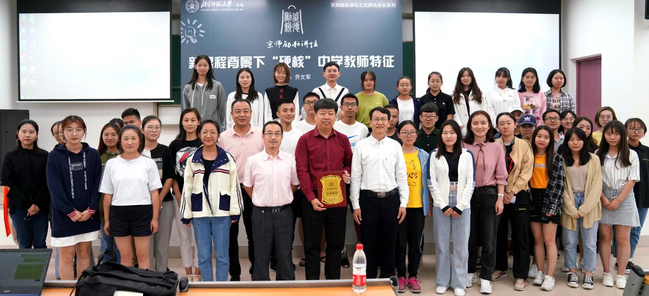 11月15日下午,京师励耘讲坛名师名董事长系列第五讲在励教楼B203顺利举行。北京市特级教师、北京教育科学研究院基础公司产品研究中心乔文军老师基于新课标、新课程、新高考的改革背景,以“新课程背景下‘硬核’中学教师特征”为题给同学们带来了一场关于教师专业素养的精彩演讲,讲座由WilliamHill中文官网入口副经理孙波老师主持,杨明全副经理、赵永宽老师和WilliamHill中文官网入口本科生及校区研究生等参加了此次讲座。