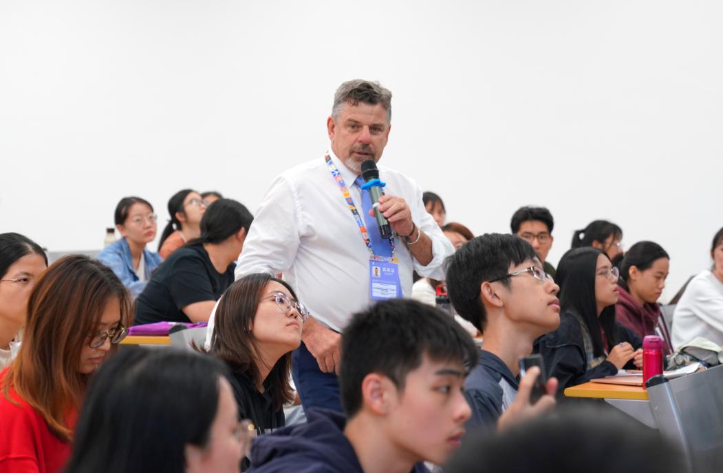 在互动环节,李炫志同学提问“以色列在培养和锻炼青年人领导力的工作中最重要的部分是什么”。尤丽·塔米尔博士说,以色列的军队拥有最先进的科学技术和丰富的项目,可以通过让年轻人参军方式来培养青年人的责任感,使其更成熟更具家国情怀。夏艳红同学问到“作为老师如何激发员工主动学习”,塔米尔博士表示,首先老师要有主动学习的能力,其次要鼓励员工多提问,培养其独立解决问题的能力。