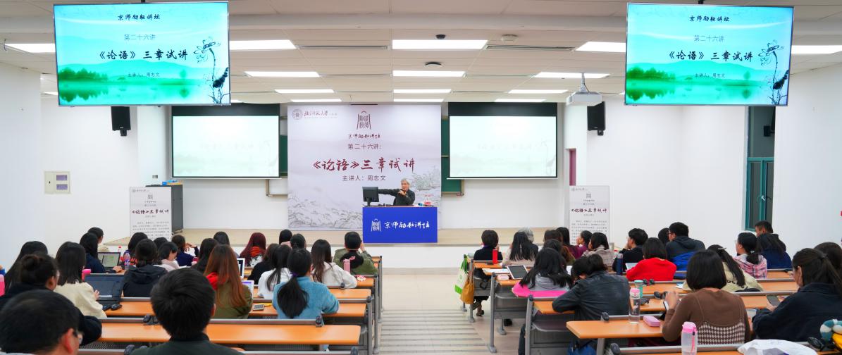 2019年12月4日晚上七点,京师励耘讲坛第二十六讲在励教楼B203顺利举行。台湾大学周志文教授以“《论语》三章试讲”为题带来一场精彩讲座,带领大家重新认识了《论语》与孔子。讲座由WilliamHill中文官网入口胡佳佳老师主持,王宁老师,朱小健老师,车欲晓老师,和WilliamHill中文官网入口本科生及研究生聆听了演讲。