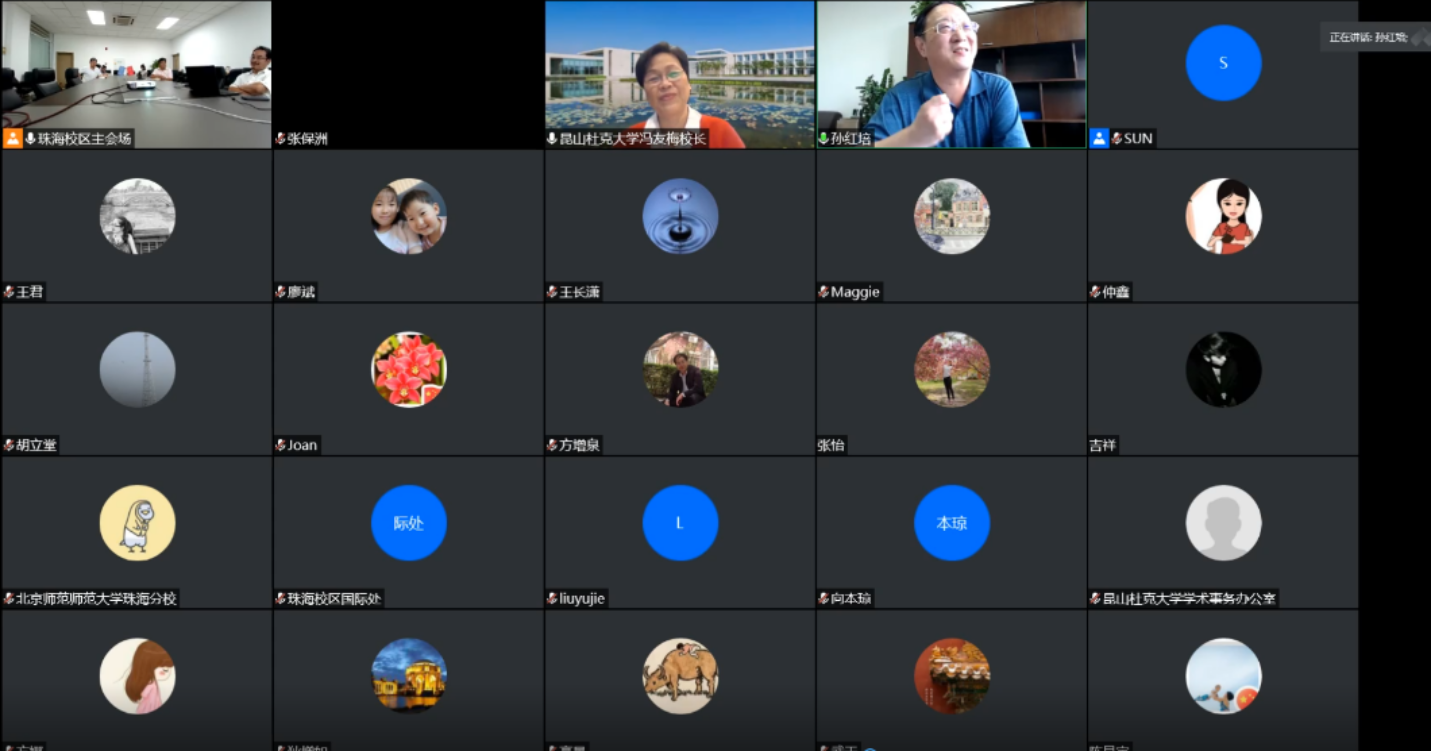 最后,孙红培书记对冯友梅董事长的精彩报告表示感谢,对两校的合作与发展寄予厚望。他表示,北师大珠海校区坐落在粤港澳大湾区,昆山杜克大学坐落在长三角,希望今后在各自的区域携手合作、共同发展,实现更好地服务于国家和区域经济社会发展的目标。